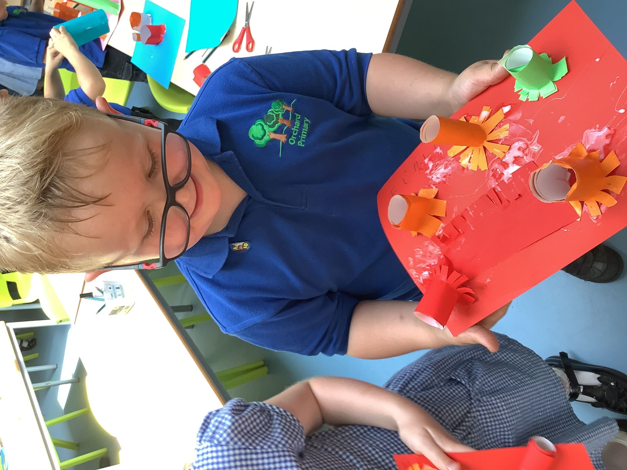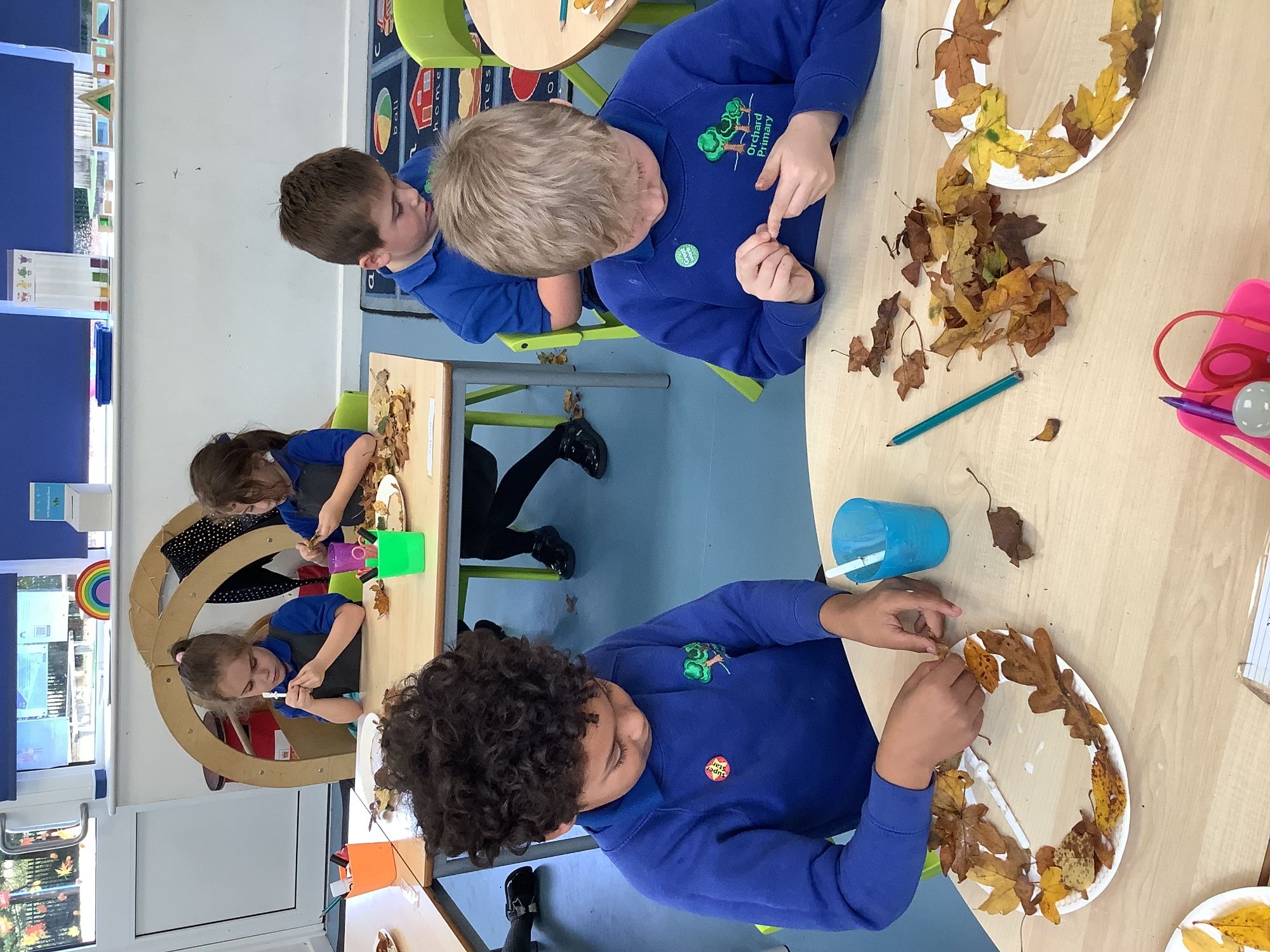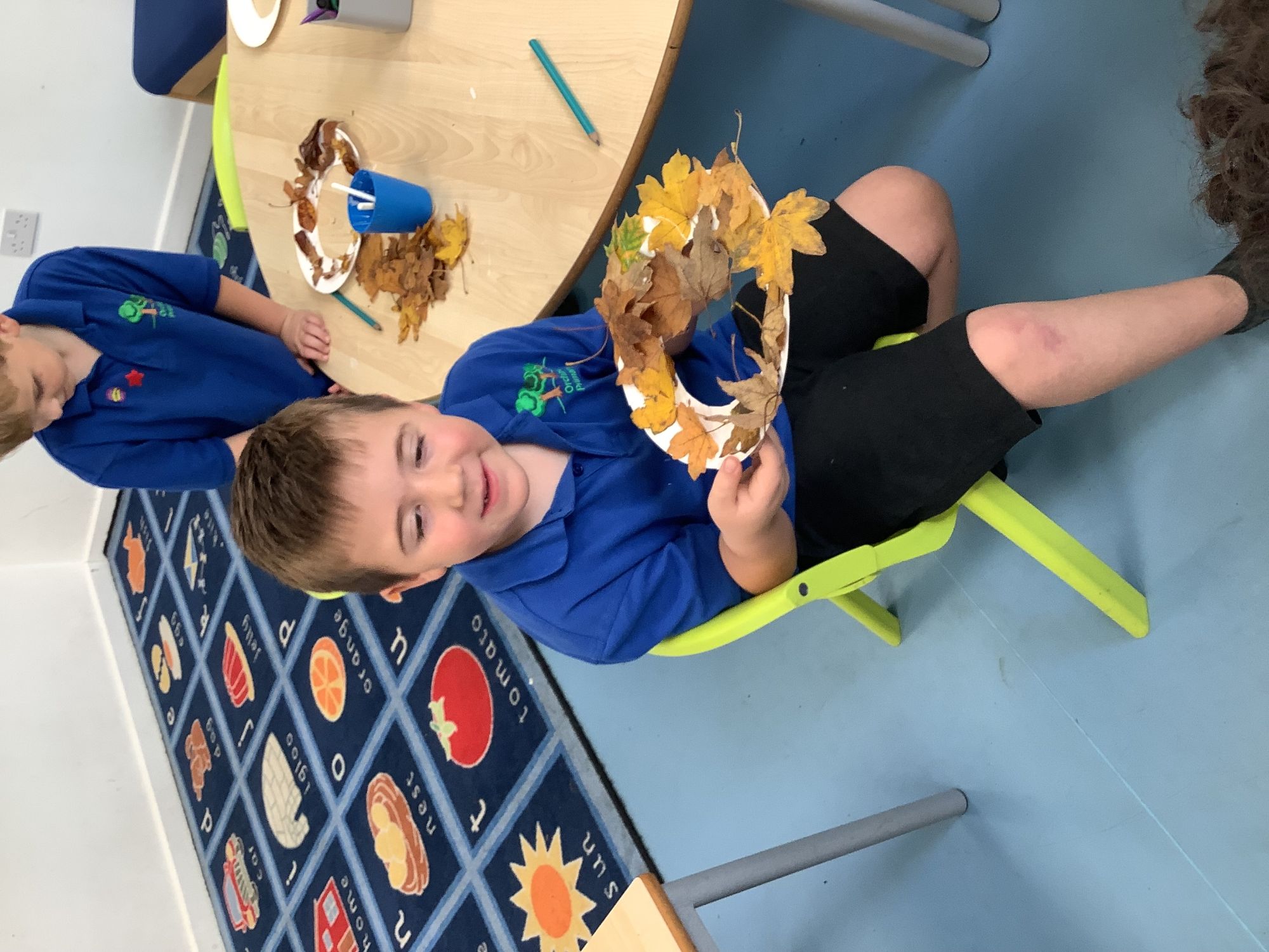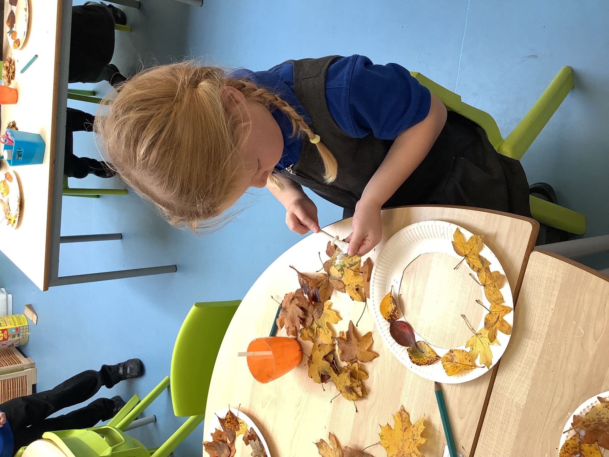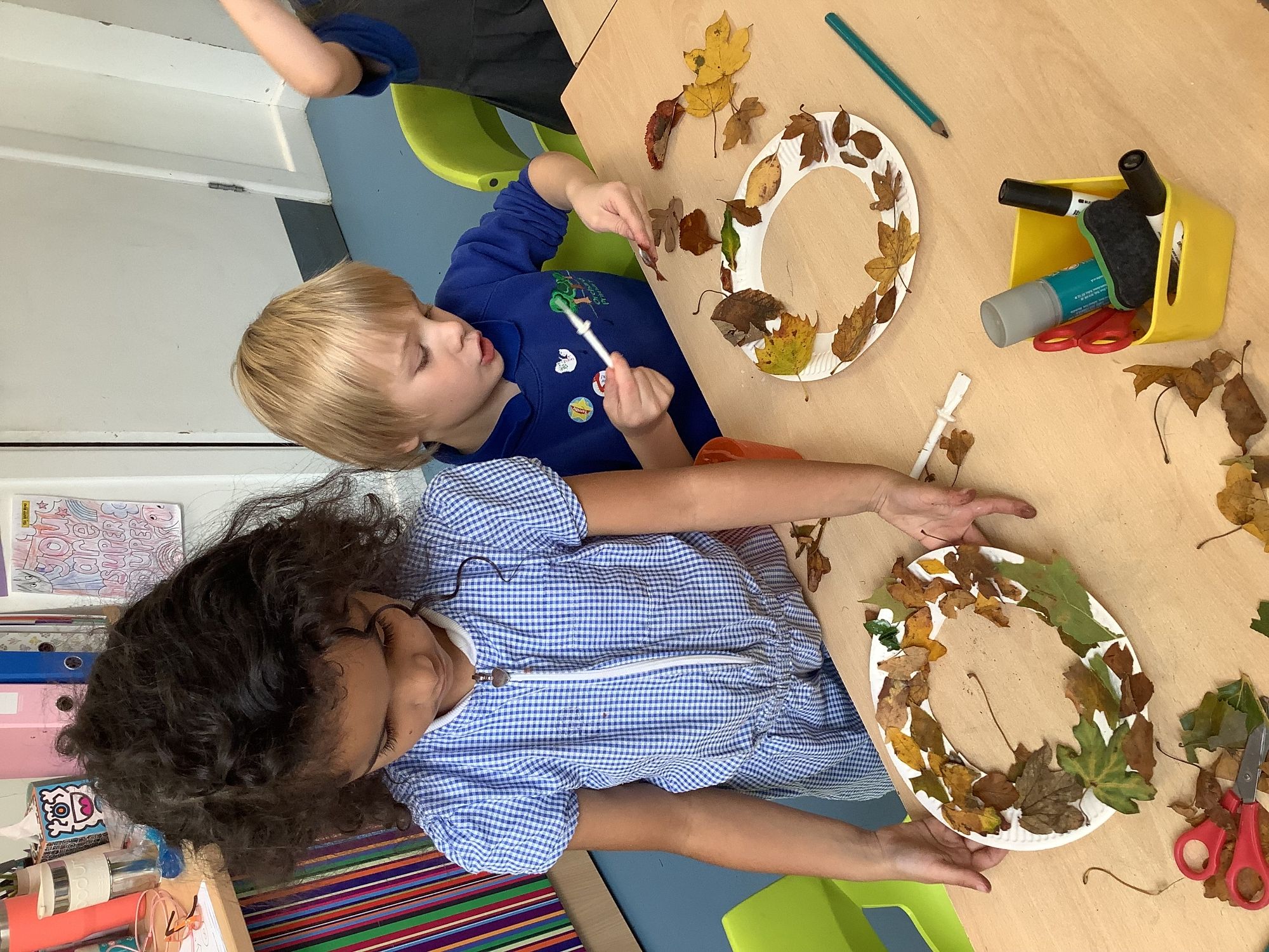 In Science this week, Year 1 have been learning all about the season of Autumn. We talked about the clothes we wear at this time of year and what the weather is like. Then we headed outside to see what changes we could spot! We noticed the leaves changing colour, falling from the trees, and the weather turning colder. To finish our lesson, we collected a variety of colourful leaves and used them to create our very own beautiful Autumn wreaths!