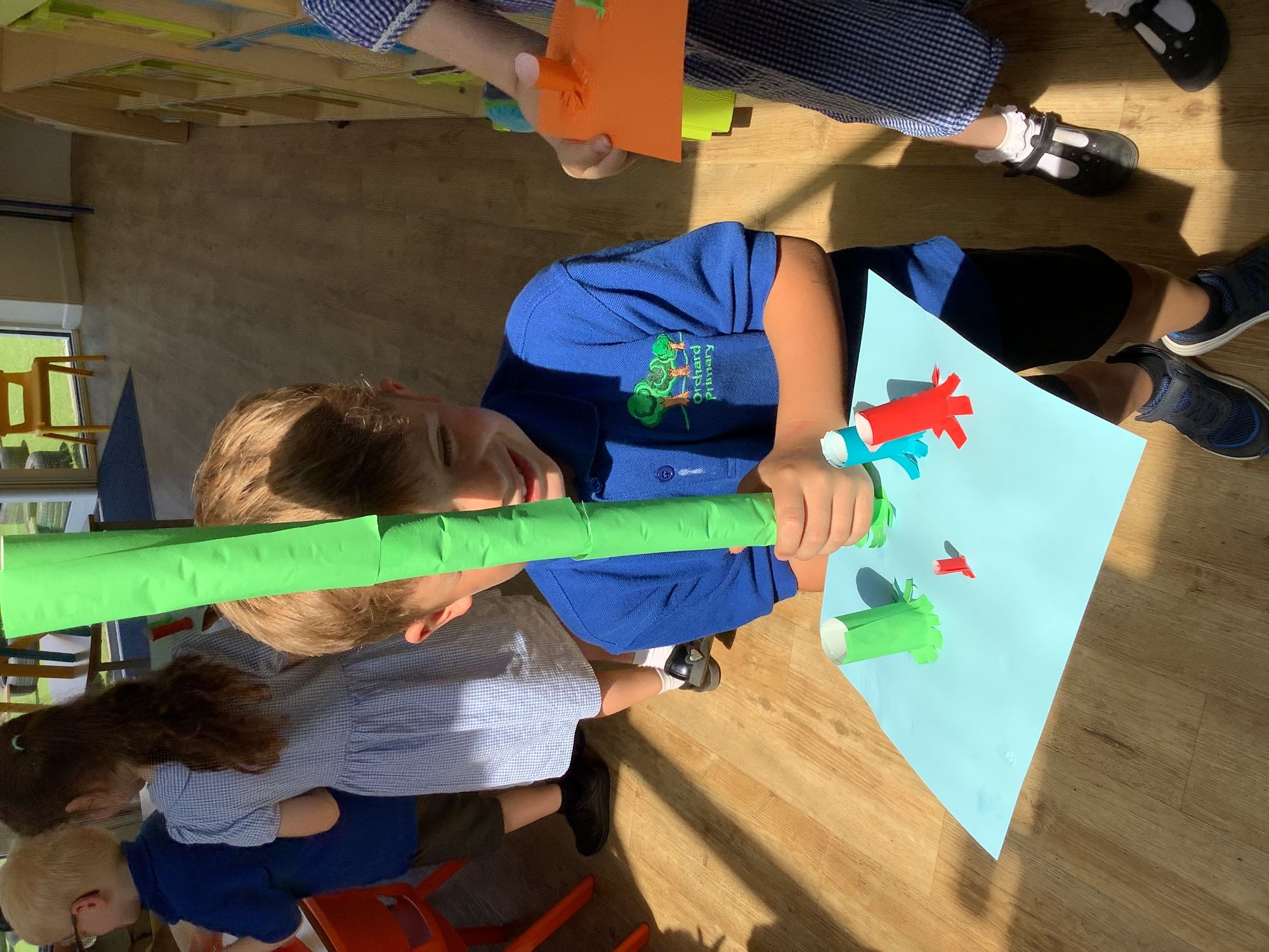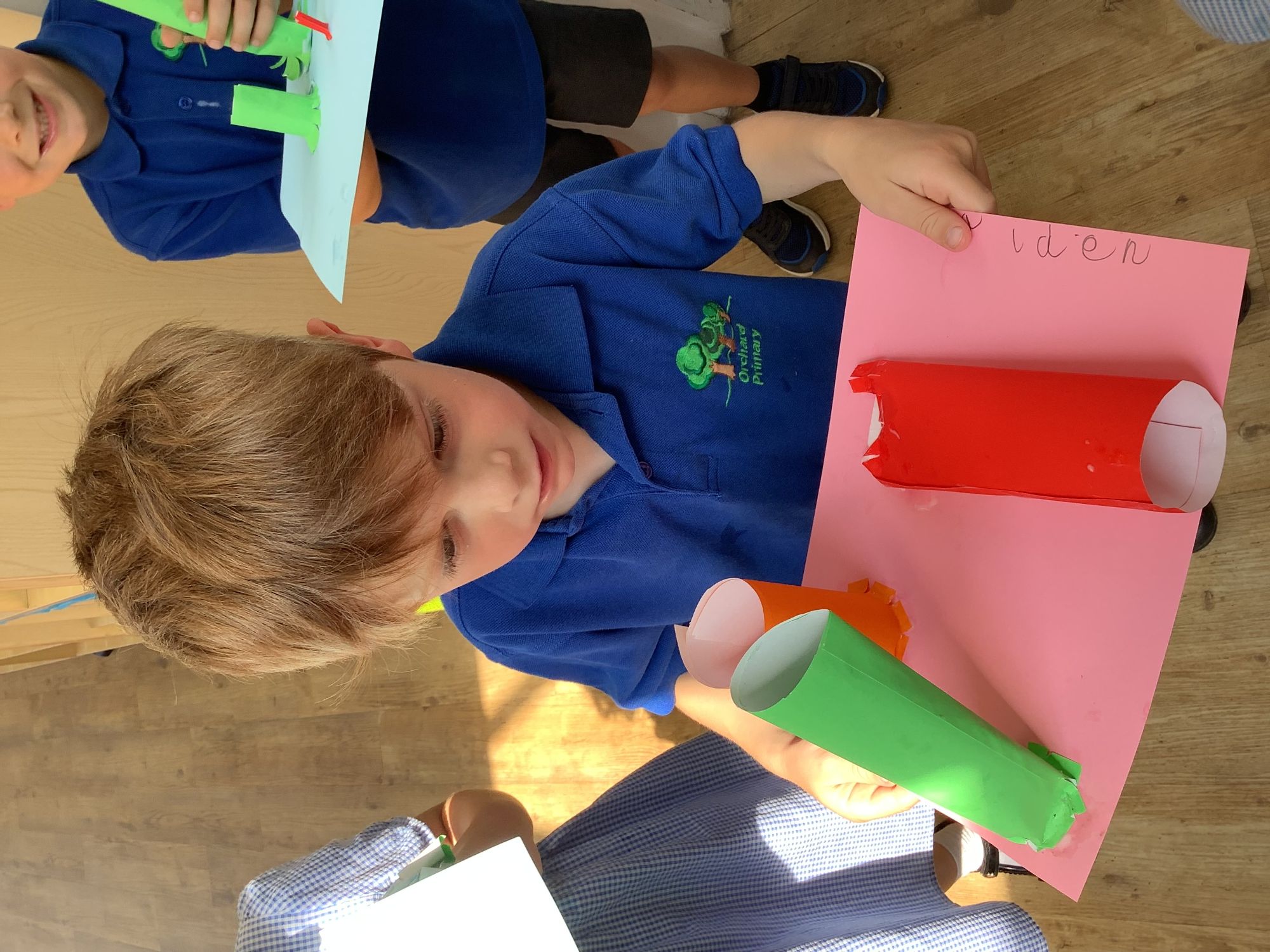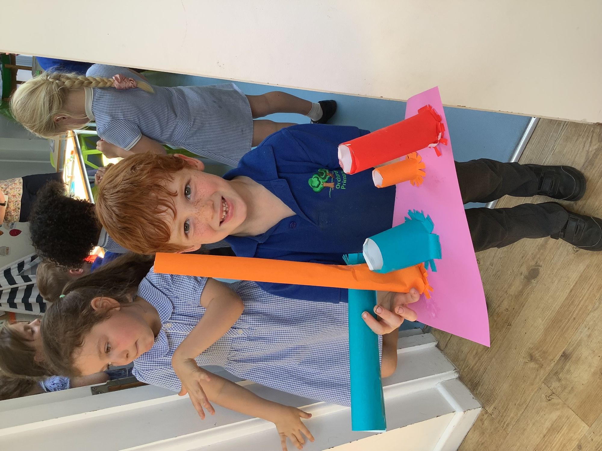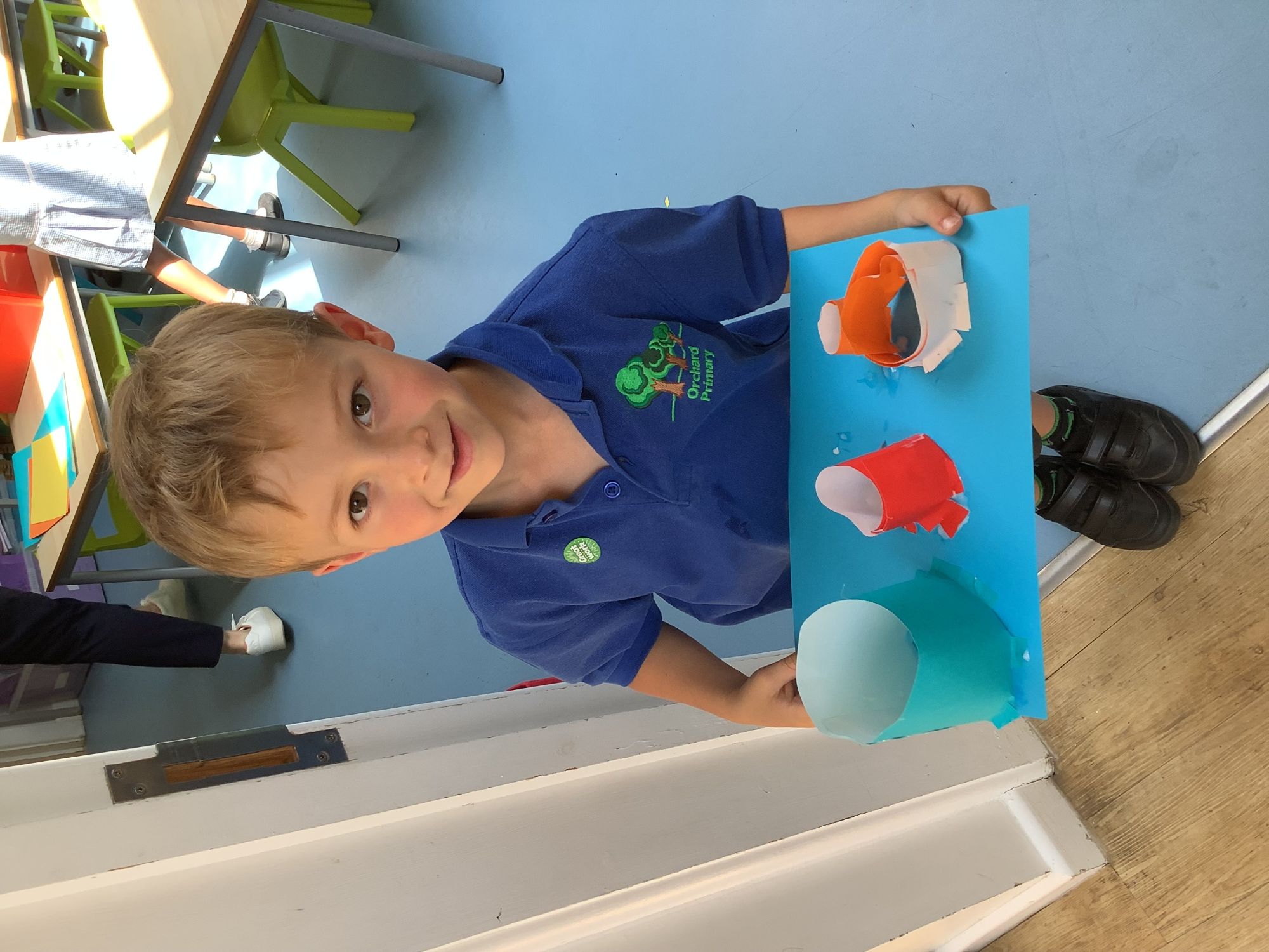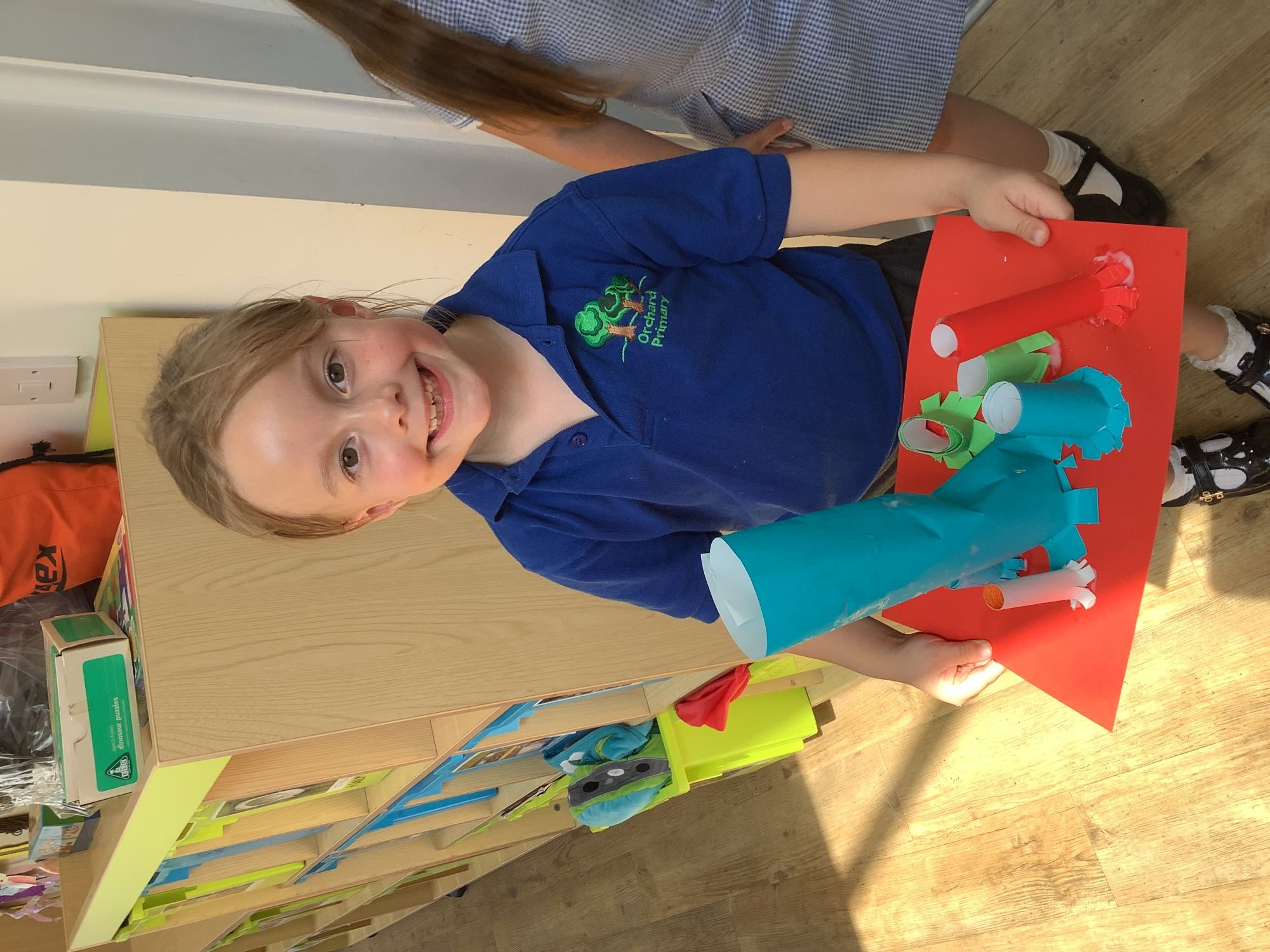 In art this week we have been using rolls of paper to make 3D towers. We started the lesson by looking at the artist Samantha Stephenson and her sculpture 'other'. We thought about what we could see, where we thought the sculpture was located and what it was made out of. We then had a go at creating our own 3D tube towers, thinking about the size, length and how we were going to attach them to our base. Once we had finished, we shared these with our partners.