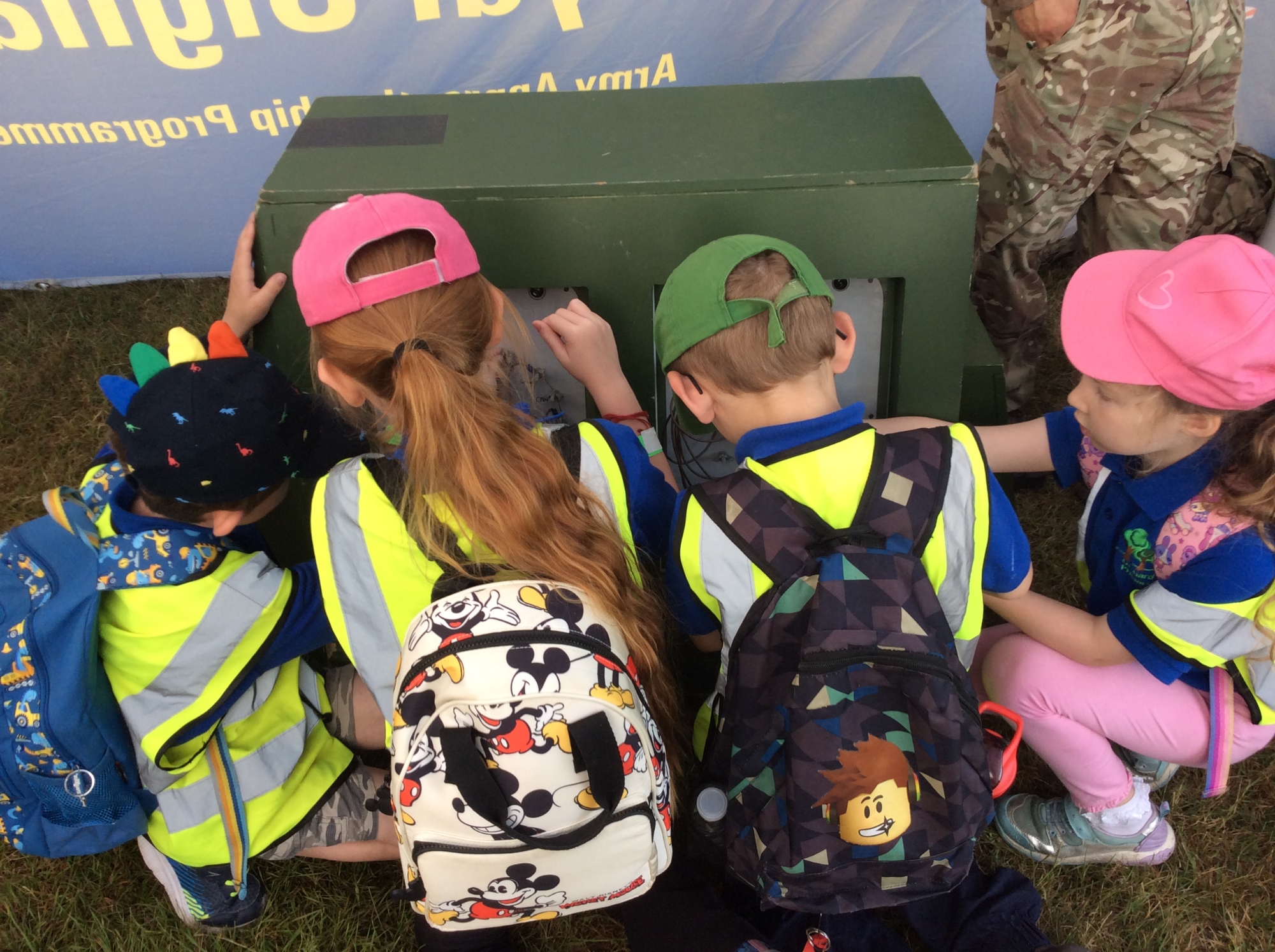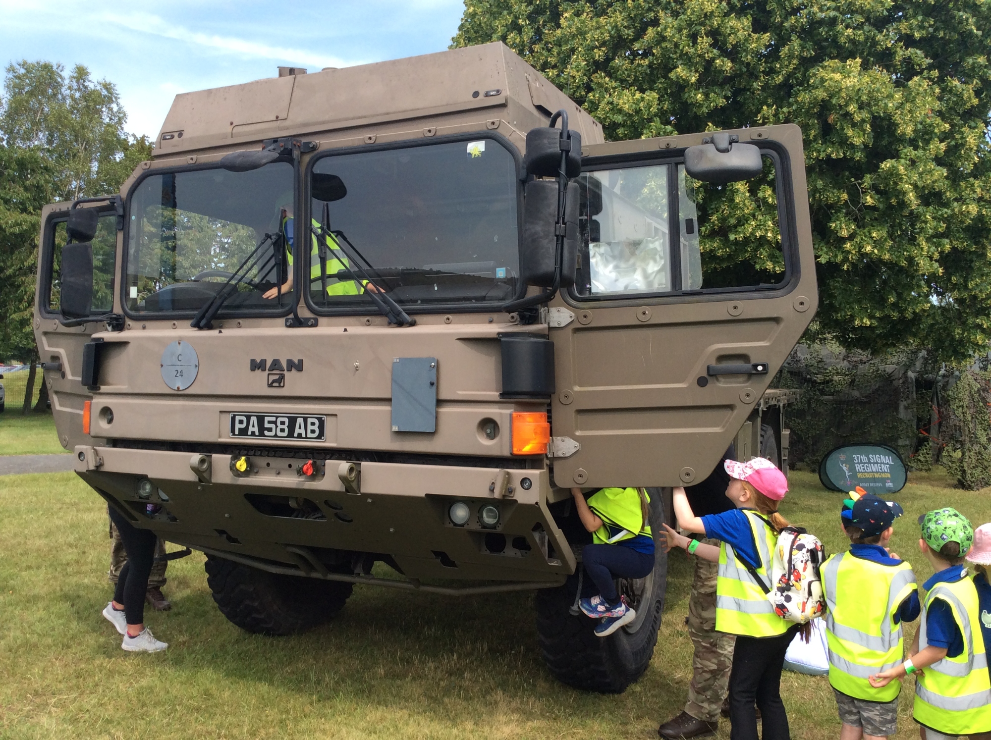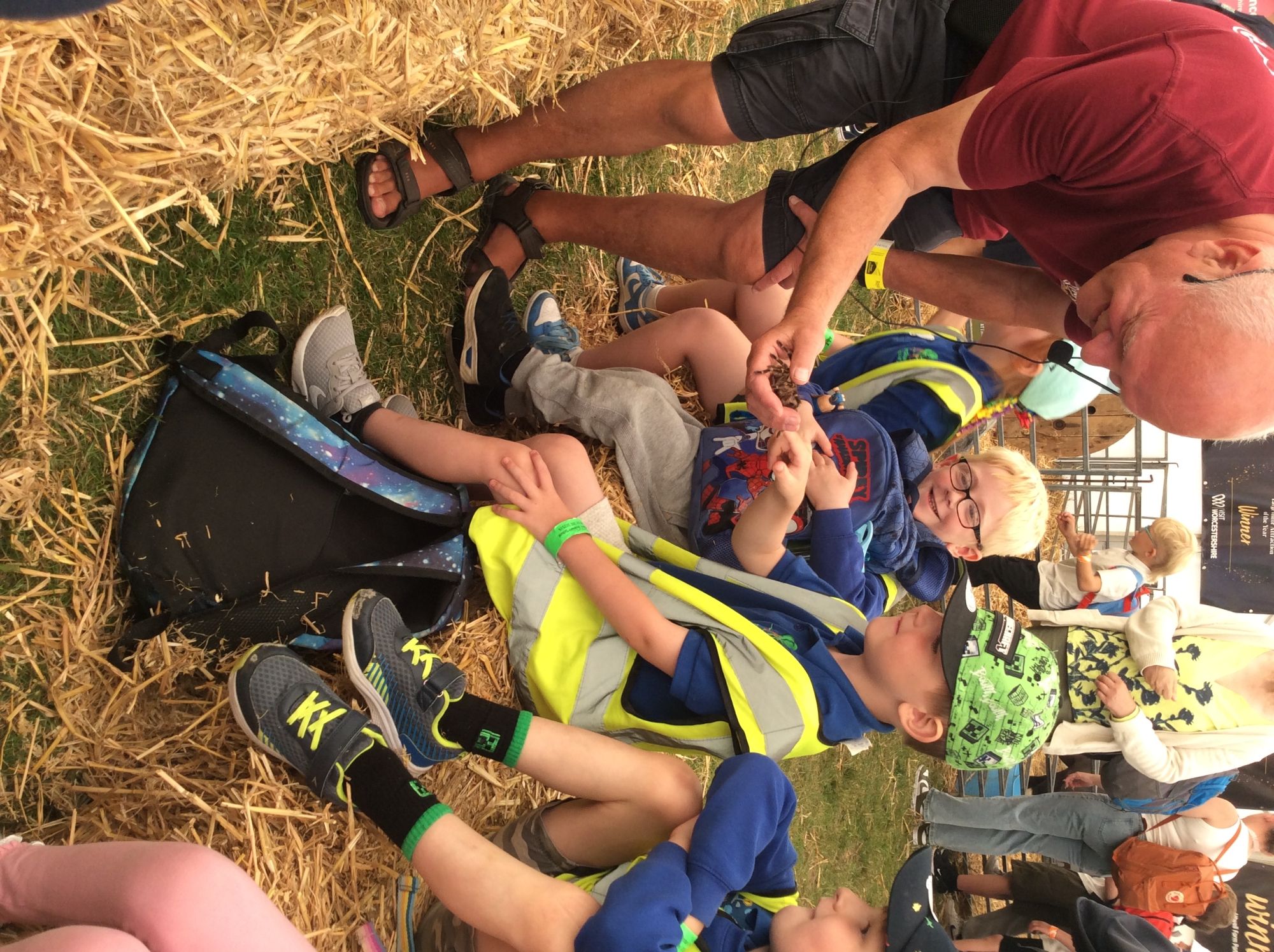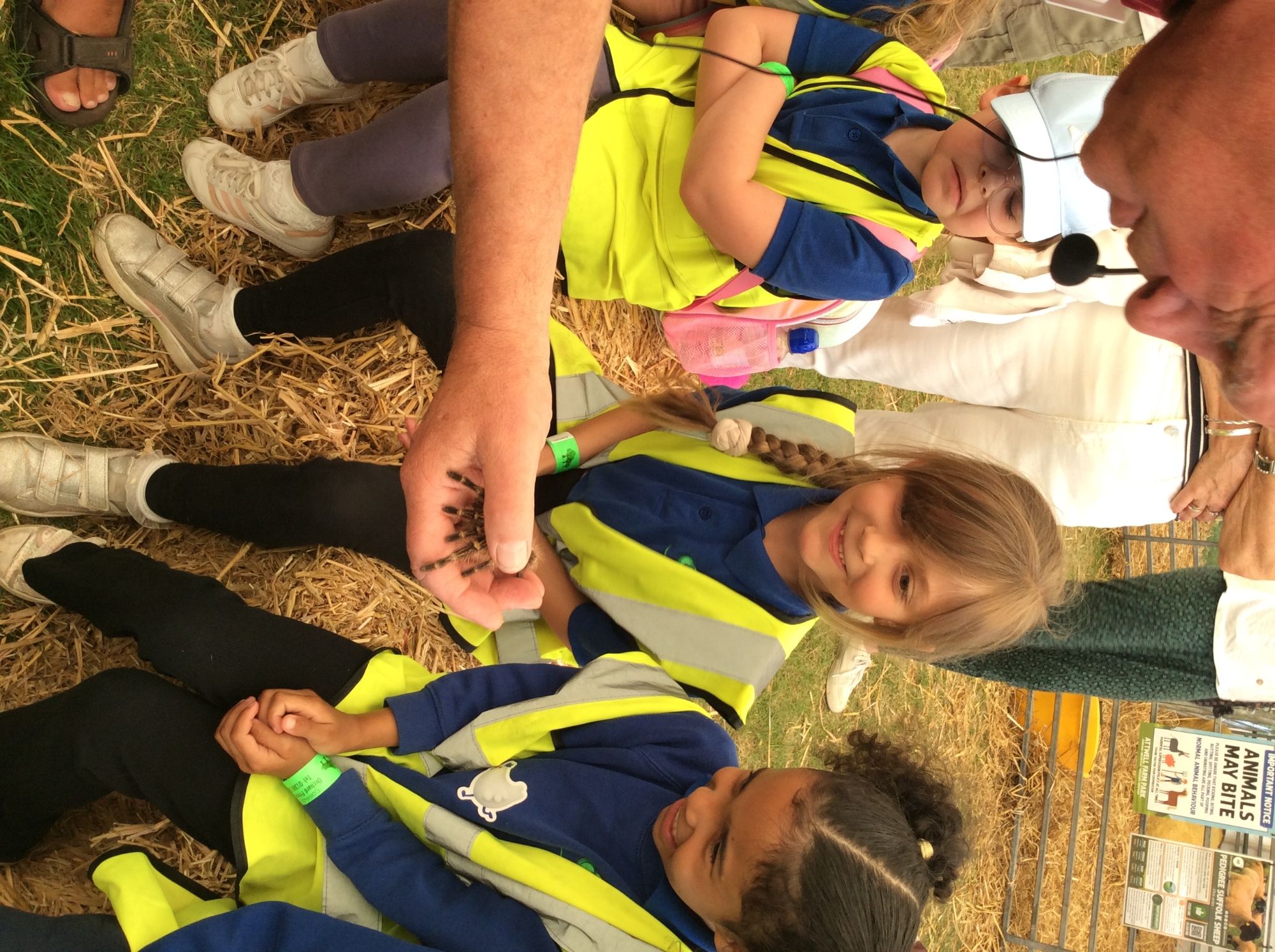 Our trip to the Three Counties Show on Friday 13th June! For our first activity, we visited a bug workshop. We learnt about centipedes, stick insects and even a tarantula. Some of us were even brave enough to stoke it! After lunch, we went to visit the animals and watched a sheep-shearing demonstration. To end our trip, we played in the sandpit area, and we got to pretend to drive an army truck!