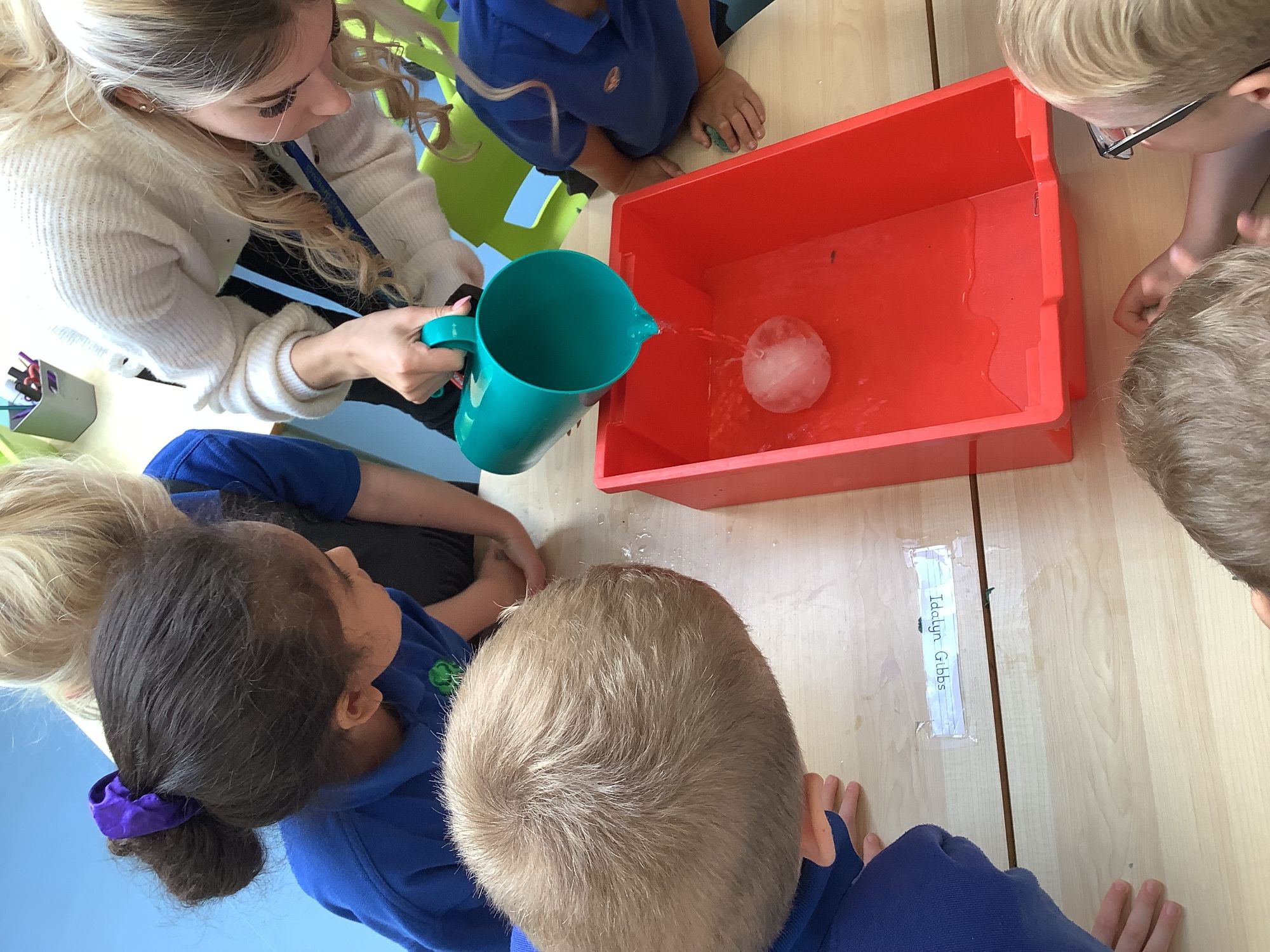 In Science, our focus has been on melting and freezing. The children worked in small groups on a very important challenge to rescue Diddy the Duck, who was trapped in a block of ice! They experimented with different ways to melt the ice, using their hands, paper towels, a hair dryer, and warm water. Can your child tell you which method worked the quickest?
