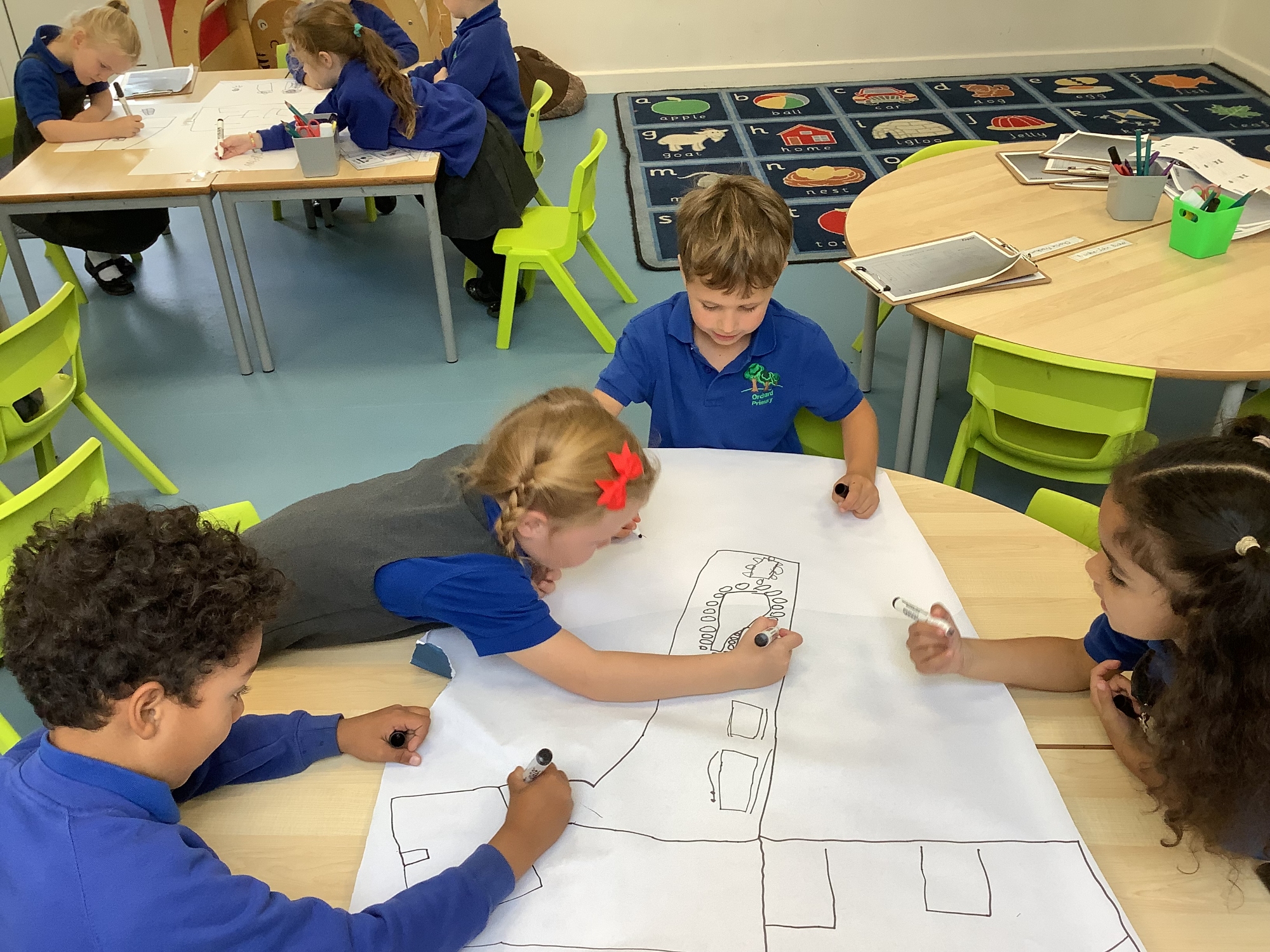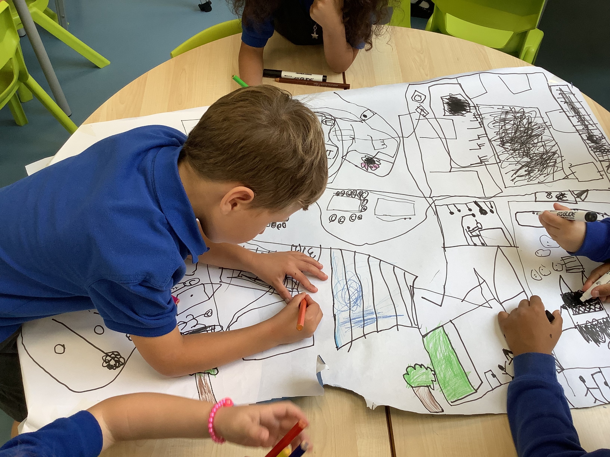 In Geography, we revisited our knowledge of maps by using the playground map from last week’s lesson to go on a teddy bear hunt! We used positional language such as “closest to” and “furthest away from” to describe where the bears were hidden. Working in small groups, we then created our own maps of the school grounds. We thought carefully about using keys and symbols to represent different features, and afterwards explored each other’s maps to spot the features shown.