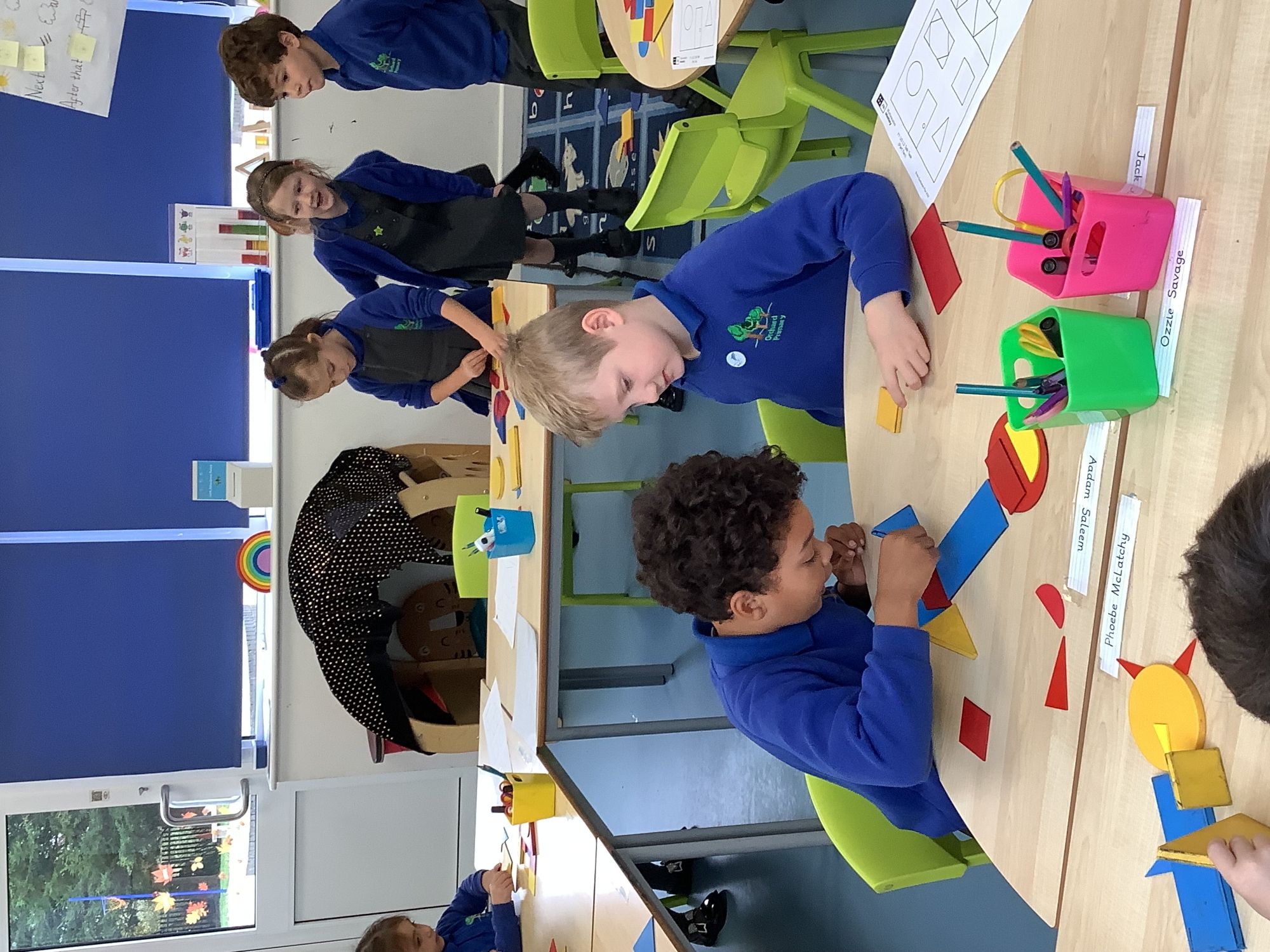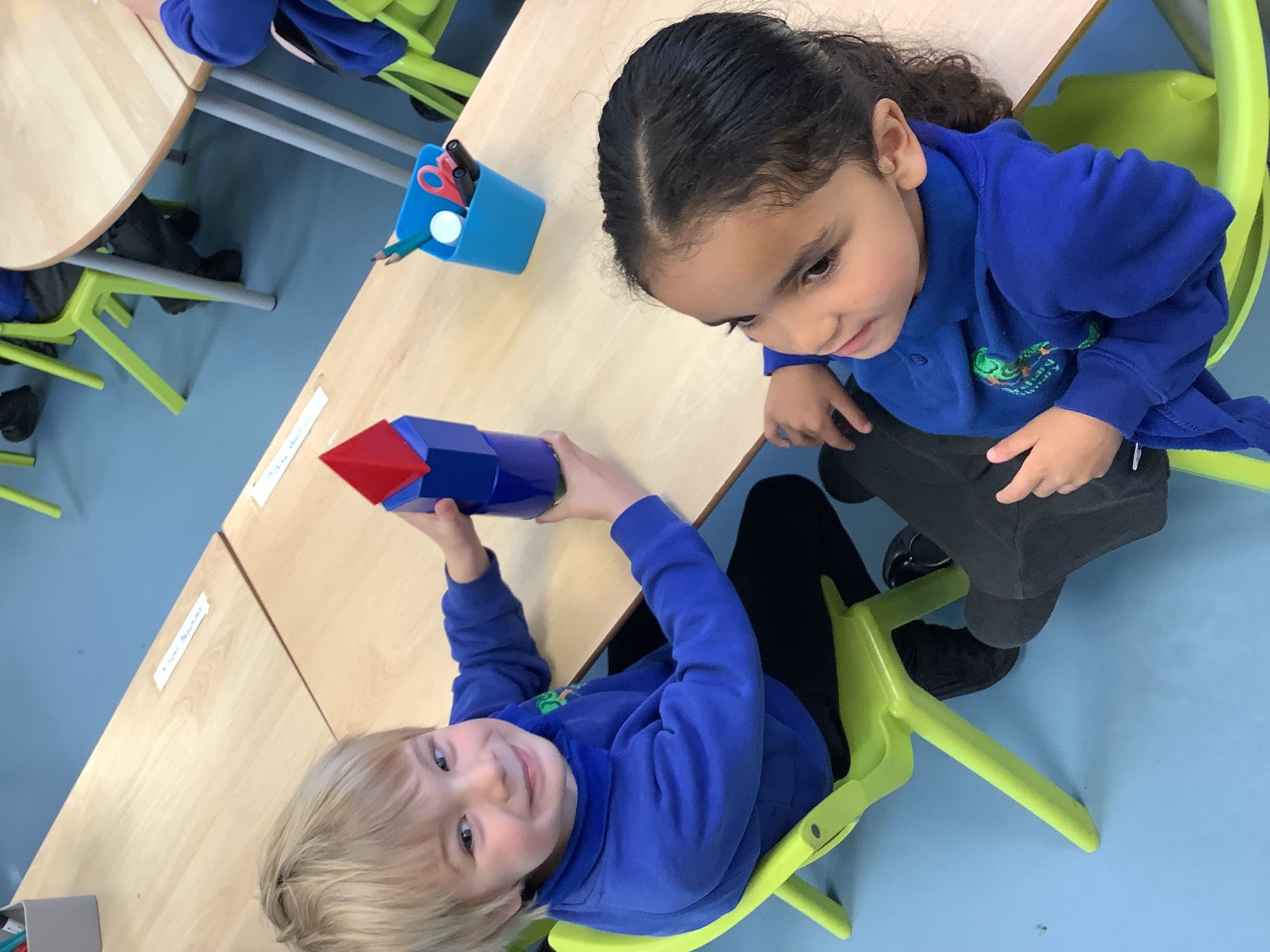 This week in Maths, Year 1 have been busy exploring 2-D and 3-D shapes. We sorted shapes into different groups based on their colours, sides and faces. Using 2-D shapes, we created our own imaginative pictures and explained to our partners which shapes we chose and why we used different sizes. In our 3-D shape lesson, we had lots of fun building towers and discovering which shapes worked best. We found out that pyramids and cones make the perfect tops for our towers!