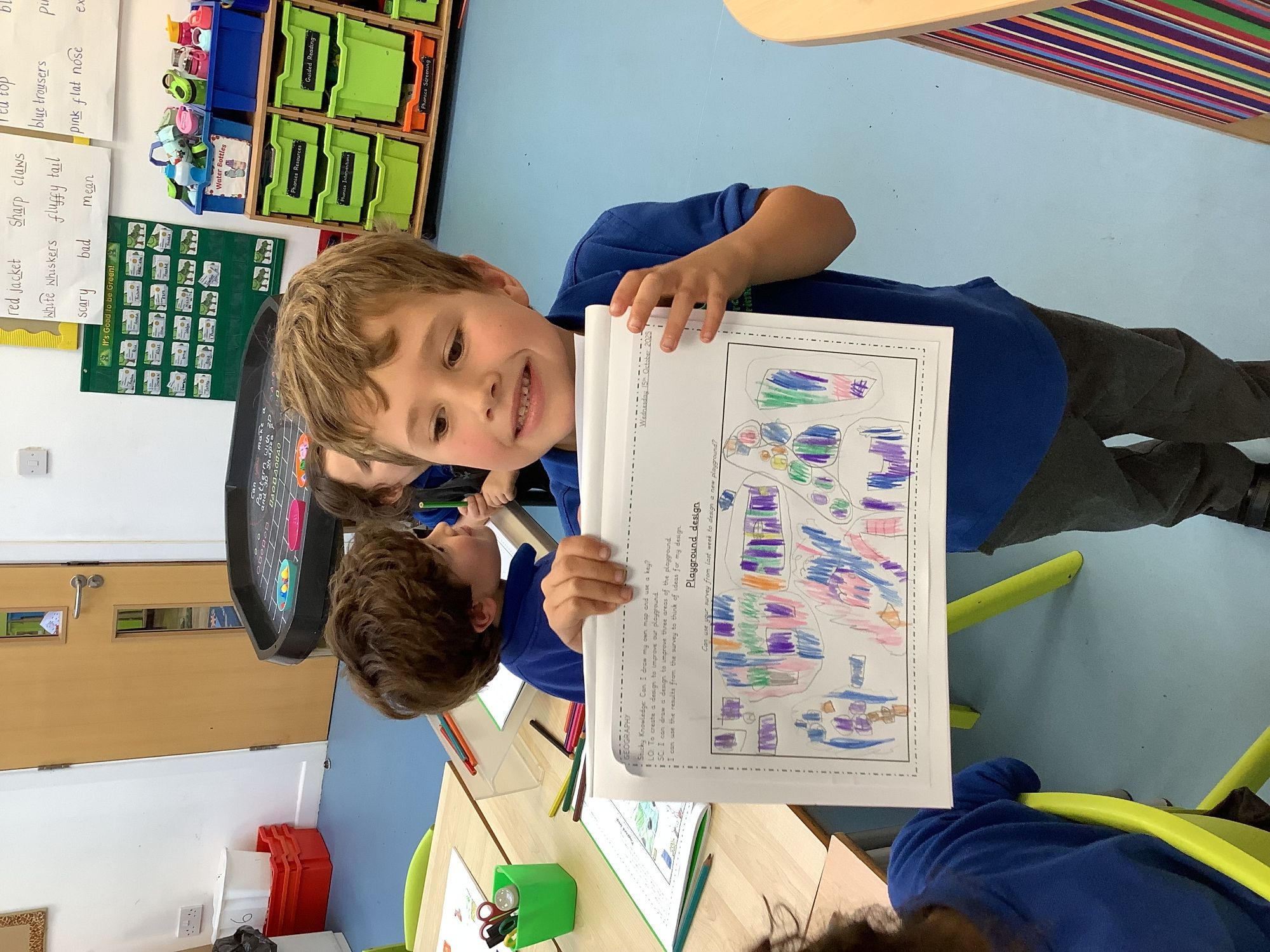 In Geography this week we have been looking at aerial photos of different locations. We then had a look at an aerial photo of the school. We spotted the playground, school field, car park and even where the Year 1 classroom is!