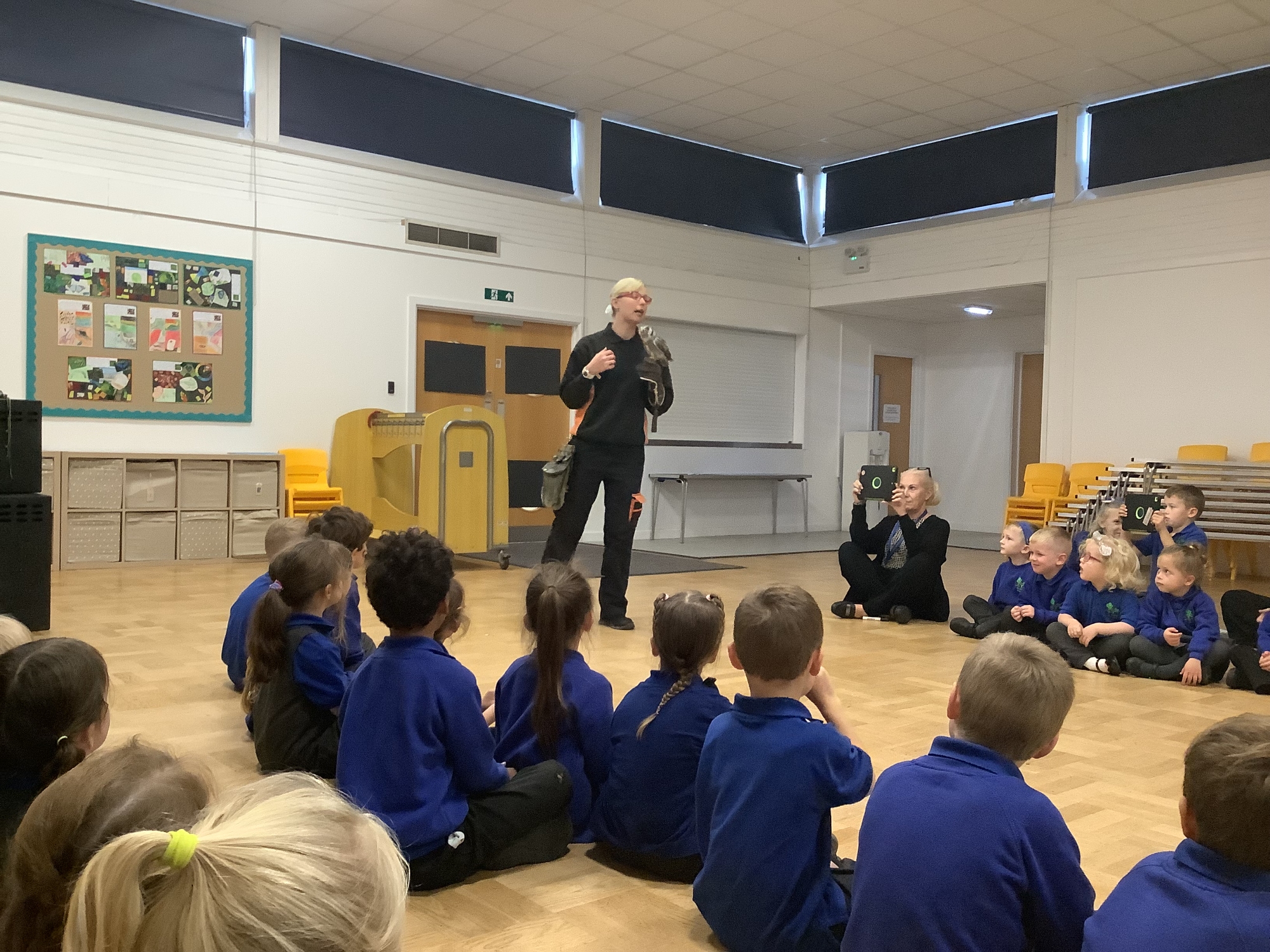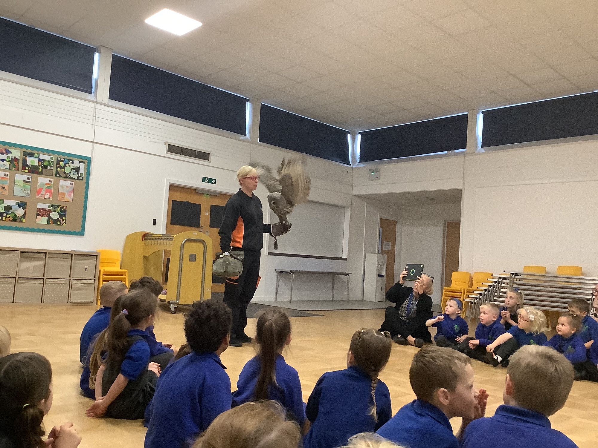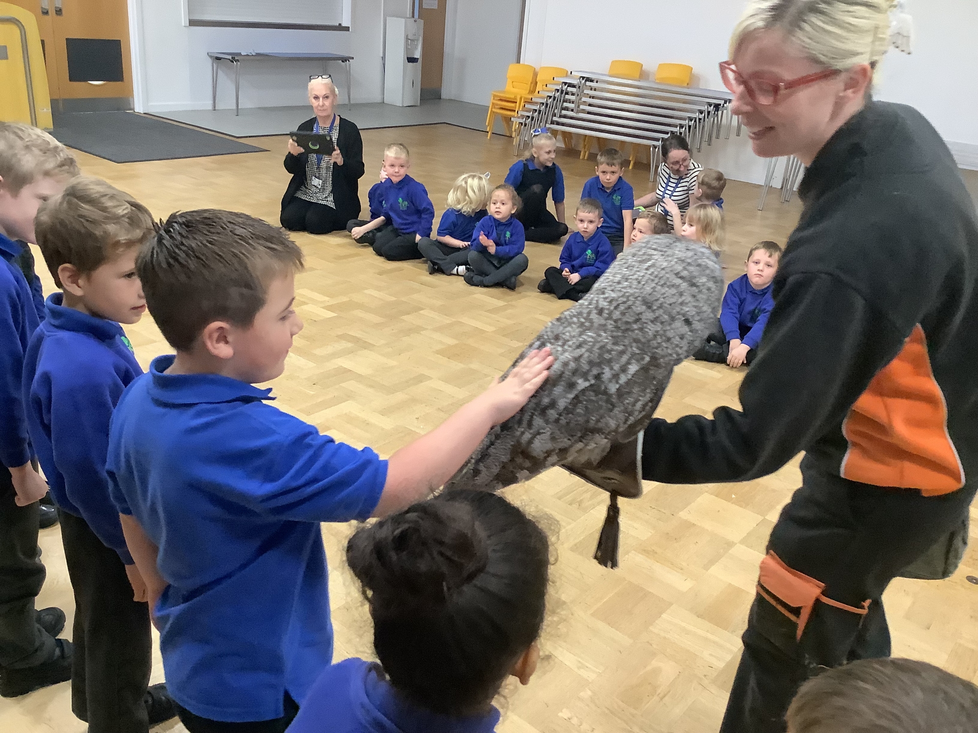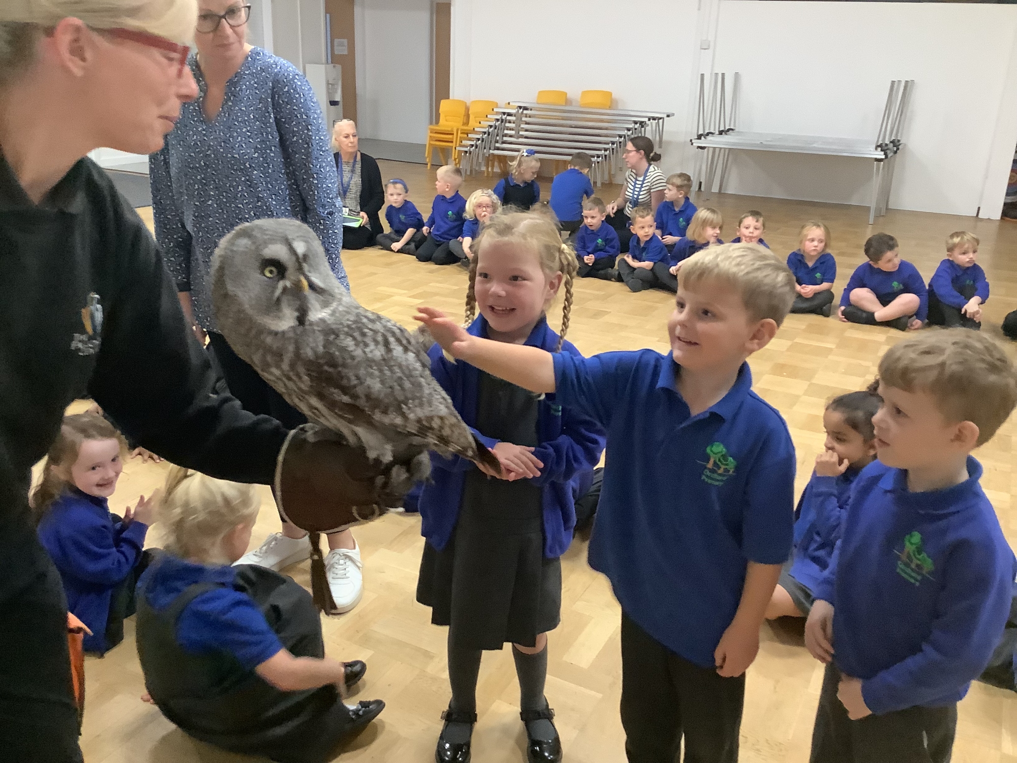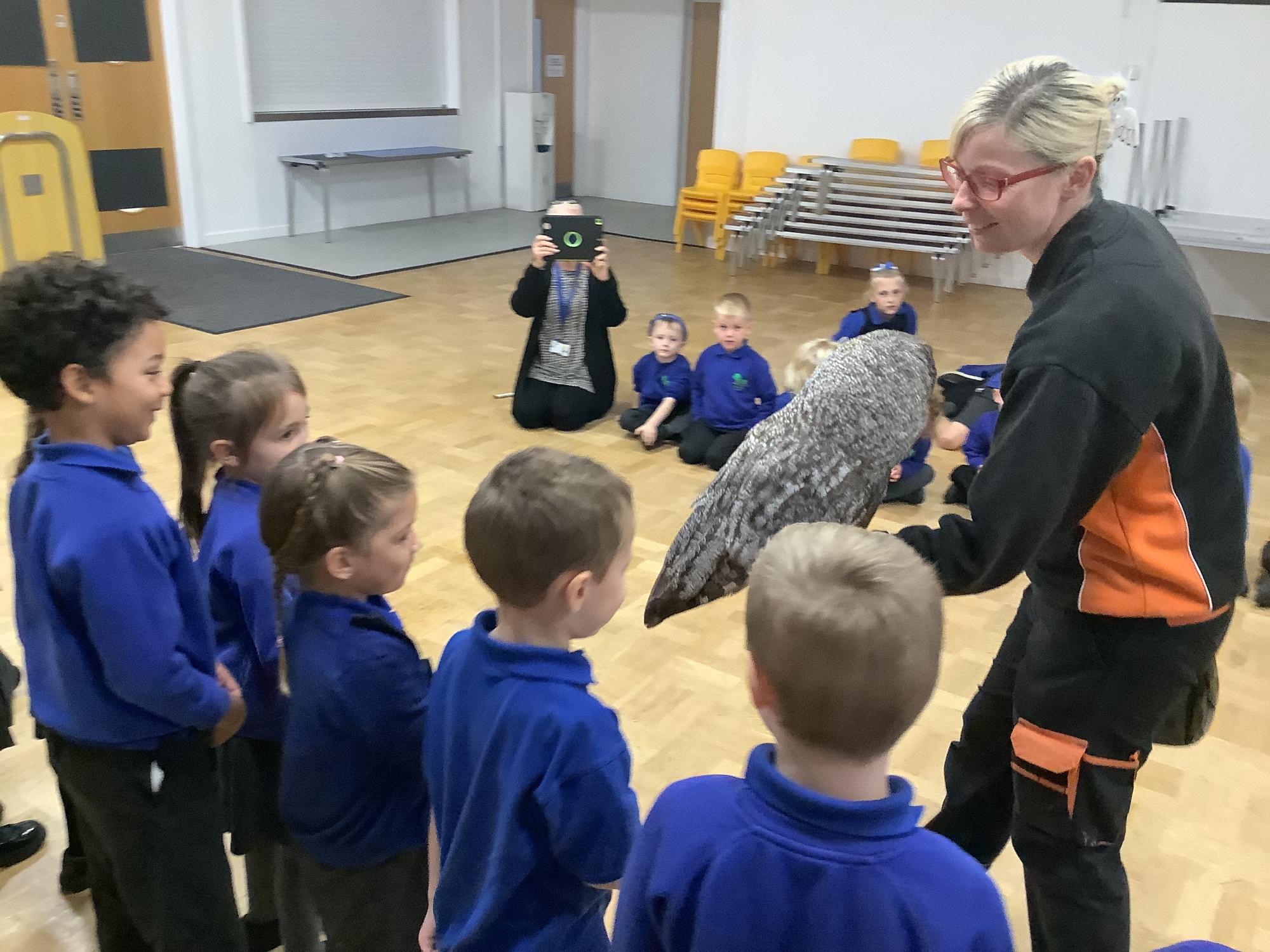 This week, we were very lucky to have an owl visit our school. We learned lots about owls, watched it fly, and even got to stroke it. Miss Dickinson even had one land on her!