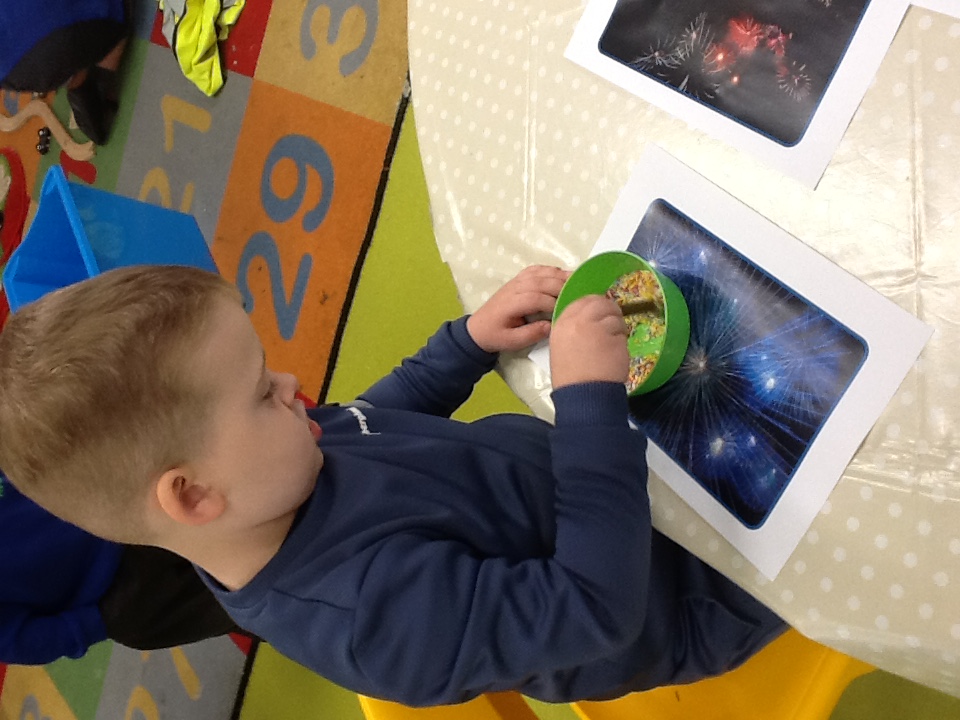 We talked about the books after reading them and the children shared their firework stories and also talked about how some fireworks can be too loud and scary. They all agreed that they loved all their pretty colours.